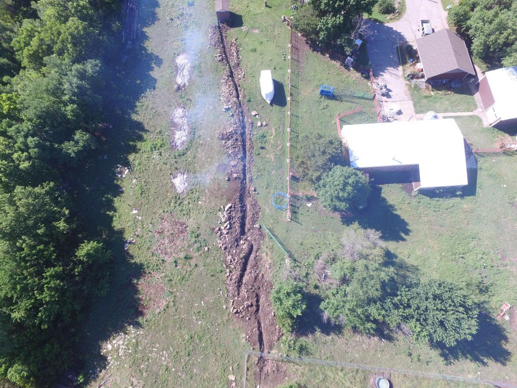 Digging the trench for the pipes was a monsterous task that took far longer than anticipated due to the rock ledge that sits under our homestead. It was so rocky that he wasn’t able to trench in a straight line and had to curve around the largest of the rocks. We rented a small excavator from Augusta Rental Inc that Brendan used to dig the trench. This made our children extremely happy as I believe they watched every minute of the trench dig that they could.