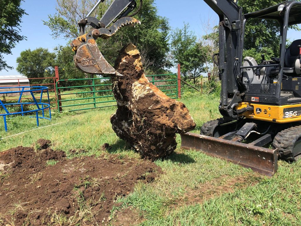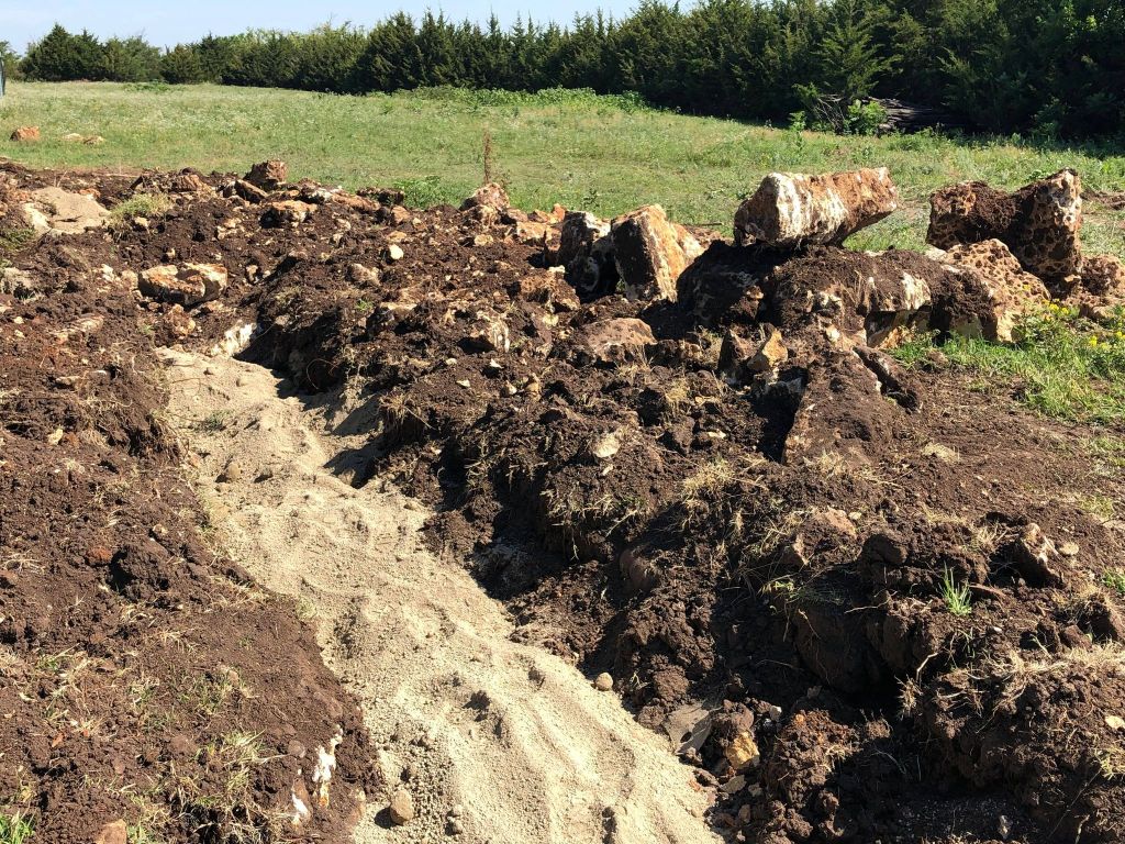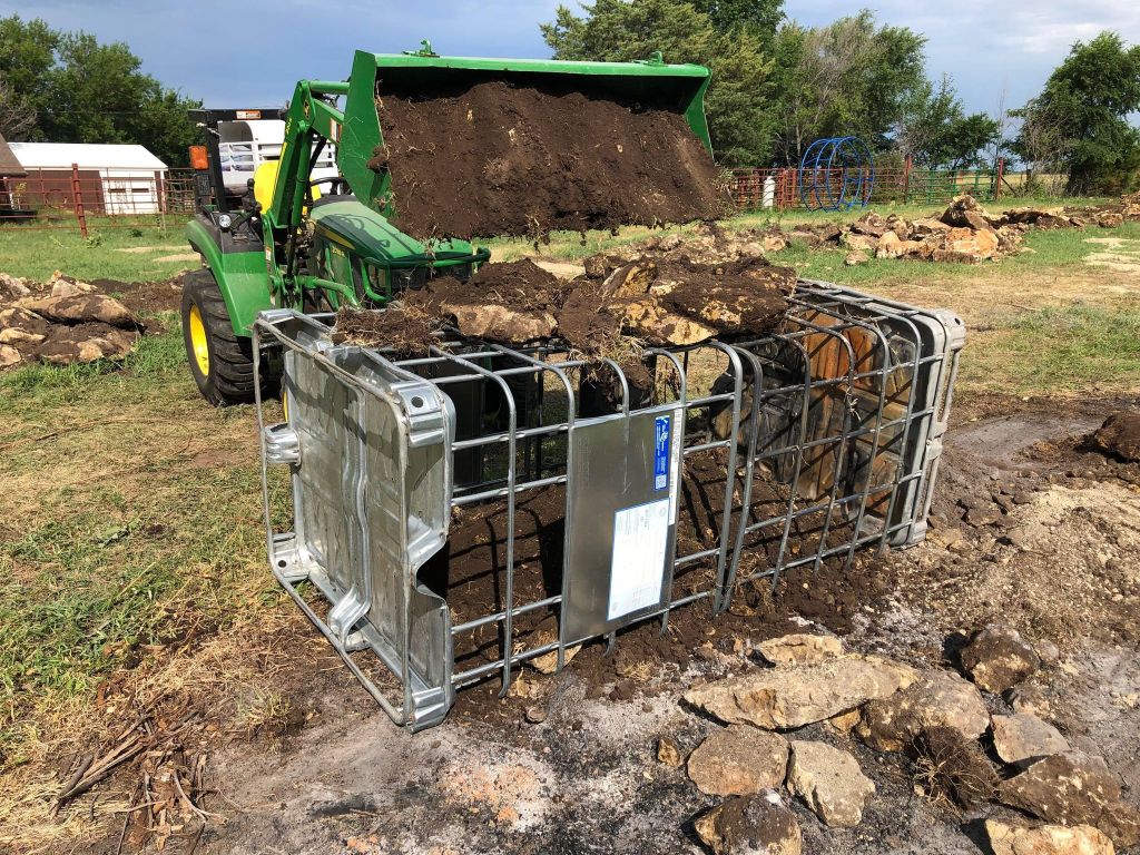 We quickly realized that we would need to buy a couple loads of dirt to fill back in over the line. Brendan found a very creative way to save what little dirt that there was by using some old metal baskets from chemical totes to make a screen deck. We still have a rock pile that we need to relocate. Landscape rocks anyone?