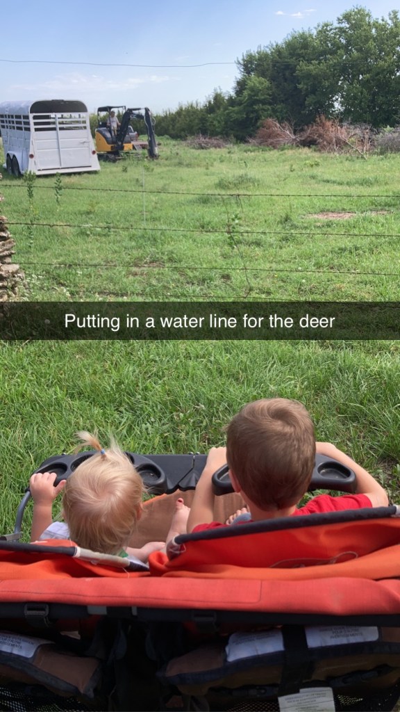 Brendan spent time this summer installing a water line to our deer pen to create a more permanent water source for our fallow deer. This has replaced the original 4 garden hose system from the nearest shed. Huge upgrade for sure! It is definitely a relief to have a reliable water system in place including options to expand from this line if we choose to expand or segment our current deer pen.