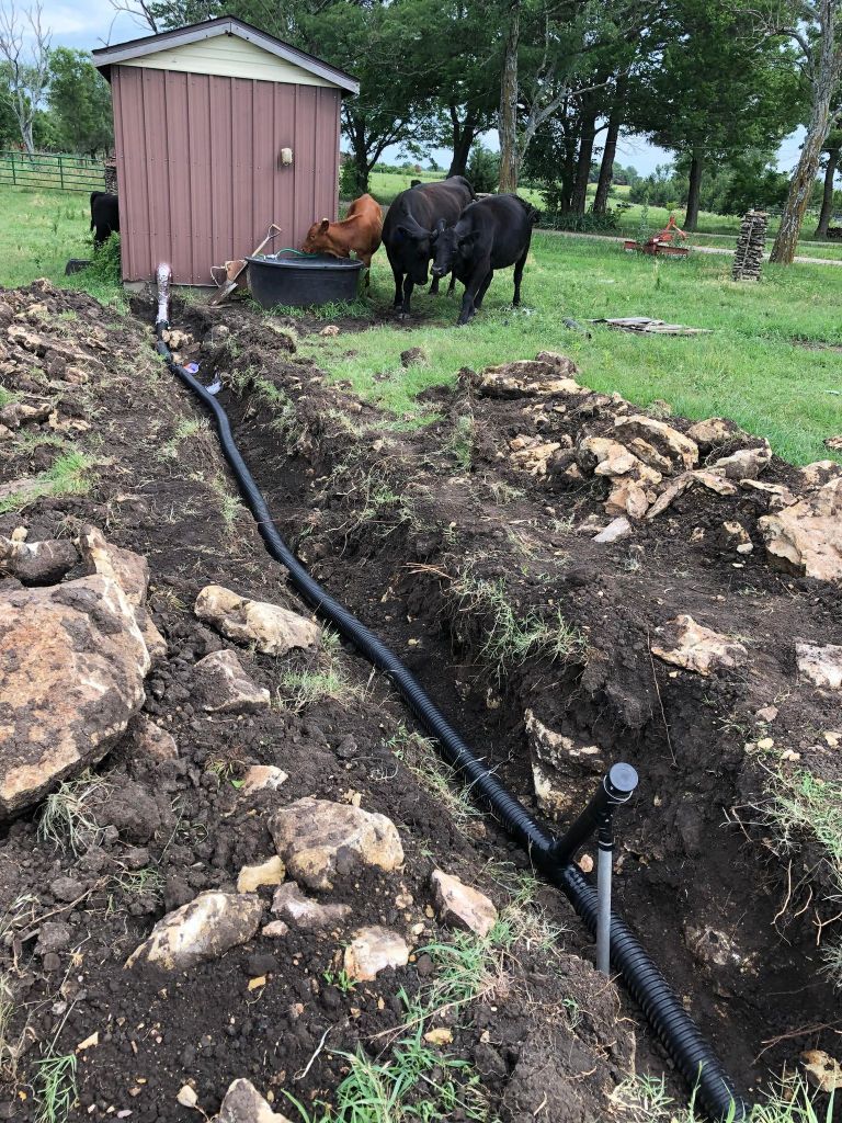 Brendan really put some forward thought into this water line. He wrapped the first portion of the line in an electric heated wrap that can be turned on in the very cold winter months. He also included an access pipe with a pre attached pull out wire in the event that it stops working and we need to replace it. At the end of the line he installed some extra line that would allow for future lines to be connected to this one as well.