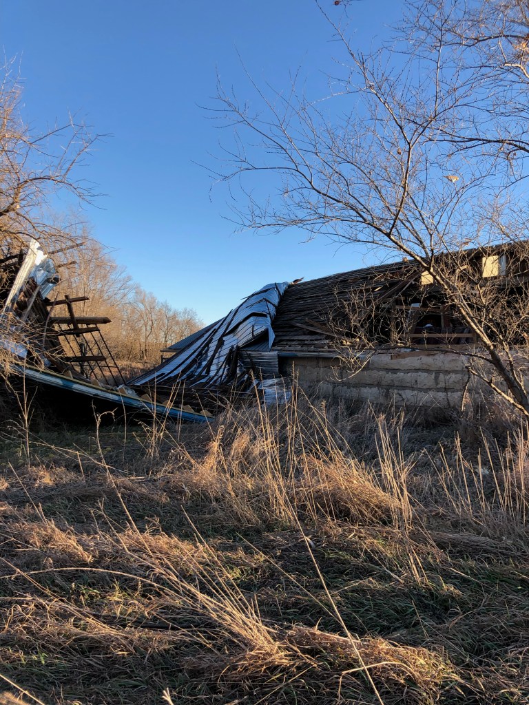The Horse Barn, although it never held horses in my lifetime, stood stoic along the dirt road on my parents farmstead. This barn is over a hundred years old and built with beautiful, huge limestone rocks. Approximately 2 years ago, straight line winds peeled the roof off just like opening the top of a tin can. Severely damaging and destroying this beloved old barn. It ripped out support beams, gates, and pen structures essentially leaving it in ruin.