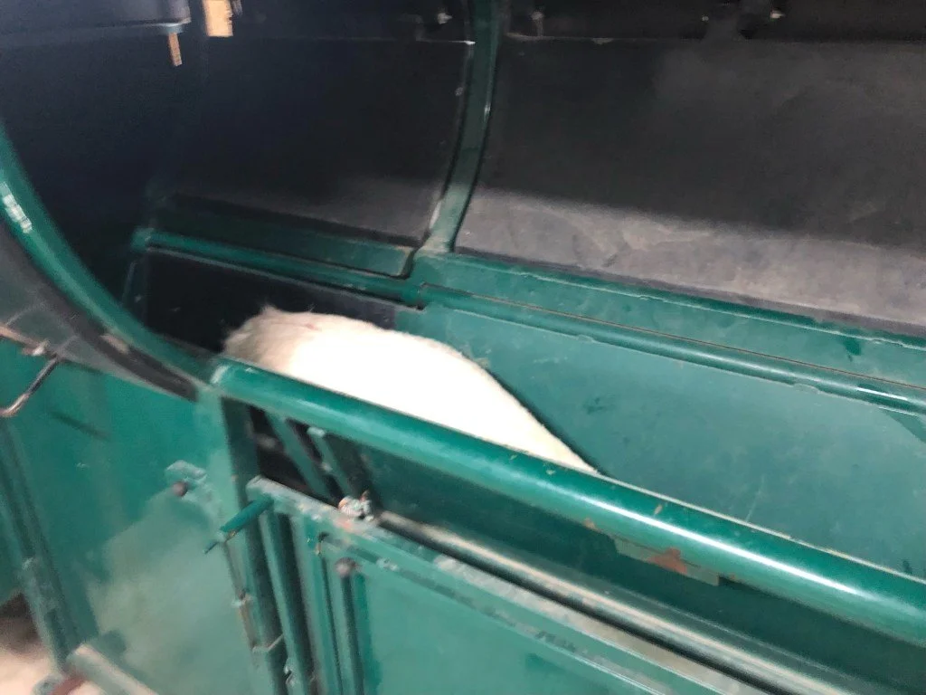 A big storm hit our deer farm shortly after we left for the weekend. Unbeknownst to us one of the temporary straps securing a new gate broke in the wind. The next morning (Saturday) the driveway camera sent a notification that we both missed because we were on our way to the Kansas Elk and Deer Association annual event. Apparently we jinxed ourselves as there was a conversation about how we all worry about gates and deer getting out. As I was heading to bed at 10:30pm the driveway camera sent another notification, so naturally I took a look at it. Nothing to worry about just a bug or something that set off the camera but I decided to look through all the other notifications from the day to get back up to date…….. I saw a deer on the driveway… a thousand thoughts ran through my head. “It can’t be!”, “is that a fallow?” “man it looks really white to me!” So naturally I scurry to find Brendan and ask him to look too. “Surely that is the wild whitetail doe we see sometimes right?!?!” ……. “Nope, she has an ear tag”