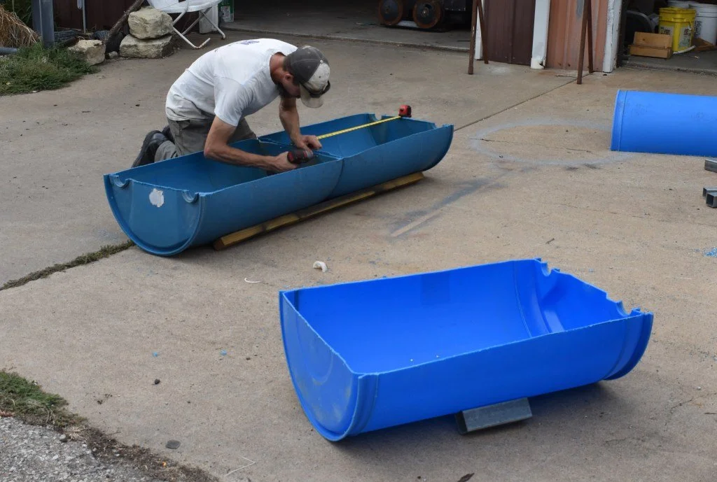 Our latest trash to treasure projects on the deer farm have been feed bunks. My husband acquired some 55 gallon plastic barrels for free. Yep! That magic price that makes us happy. Free. He cut them in half lengthwise then secured scrap wood and metal pieces to the bottom. This helped stabilize the rounded edges and created a base. TaDa! Free feed bunks for the deer. Even better is the fact that they are low to the ground and our half grown fawns can eat out of them too!