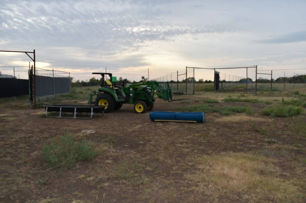 Earlier this summer, Brendan converted a large metal barrel into a standing small bale feeder. He did this by adding scrap metal legs to the barrel. He then cut out the bottom of the barrel and used some leftover chain to drape an X under the hole. Viola! Another minimal cost feeder that should help extend the feed and improve the eating experience for our deer. Now that we have divided our main deer pen into 5 smaller sections, he has been working on making some more of these small bale feeders. I believe his latest feeder utilized old t-posts from the fence we removed from the pasture. There is a good chance the third feeder will be made from an old swing set frame.