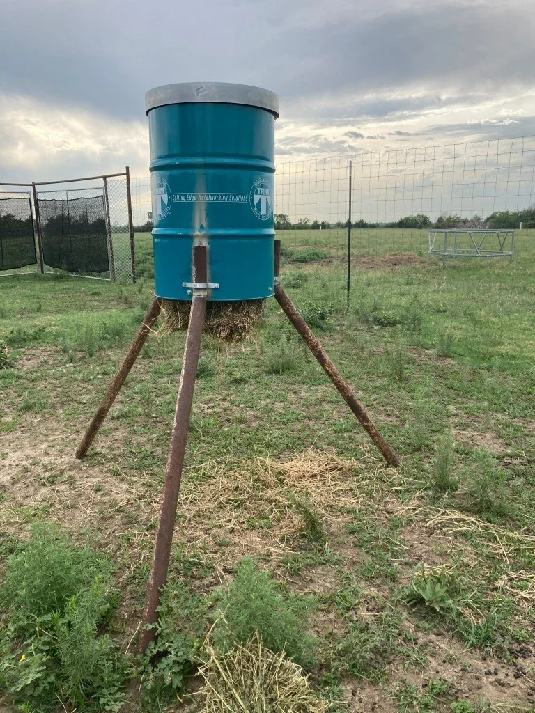 The cost of food seems crazy high these days. This is no different in the animal feed world. When you add in the extreme drought conditions here in south central Kansas, it also drives up the cost of hay. We have joked that alfalfa is starting to look like gold and priced like it too. So how do you extend the life of hay bales and ensure the animal feed isn’t wasted? Simple. Use the correct feeders. They are also costly, but where there is a will, there is a way!